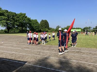 各団に分かれて、団長、リーダーのあいさつと応援練習です。