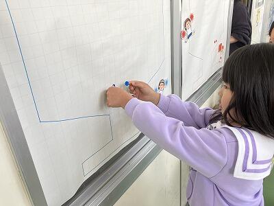2年生です。複式指導で、教室を2つに分けて指導していきます。