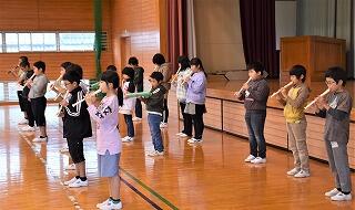 鍵盤ハーモニカで「かえるのうた」を演奏したり、「やだくん」の群読をしたりしました。