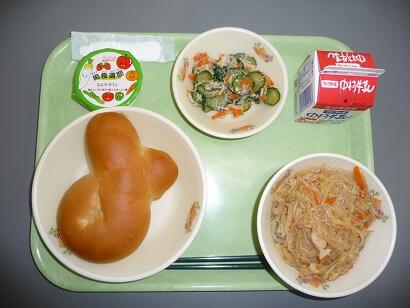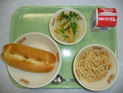 今日は、マヨネーズパン、和風スパゲティ、カラフルサラダでした。