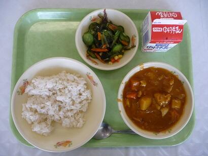 今日は子どもたちの大好きなチキンカレーでした。それに、麦ご飯と海そうサラダでした。