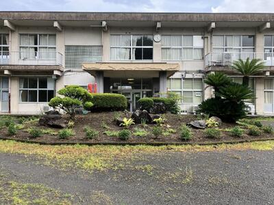 まず、学校玄関前の植栽をしていただいて、とても豪華になっています。地域の方に感謝です。