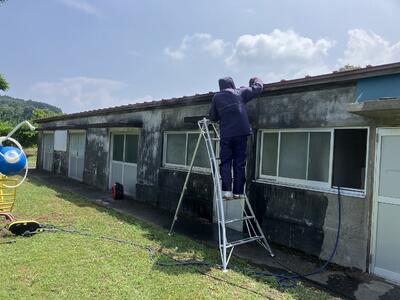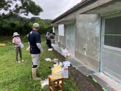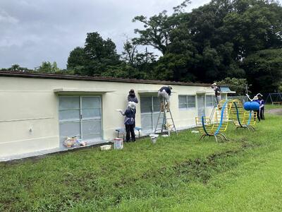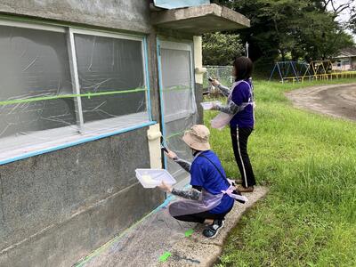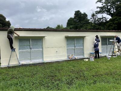 そのために、絵を描く体育倉庫をPTAと先生たちで、白く塗りました。