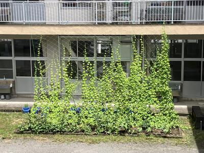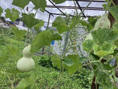 7月22日、グリーンカーテンもとうとう一番上まで届き、ひょうたんも大きなものができました。