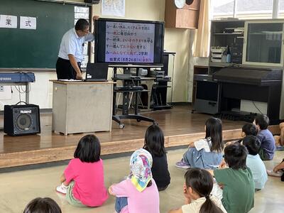 校長先生のお話です。一学期を振り返りながらほめていただきました。