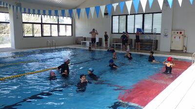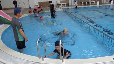 こちらは、1・2年生です。みんな顔をつけて進むことができるようになりました。