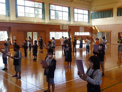 11月8日に行われる市の音楽大会に向けて合同練習が行われています。参加する学年は、3年生から6年生です。体育館に集まり、間隔をとりながら、歌の練習に取り組みました。今日は、特に強弱に気をつけながら歌っていました。本番が楽しみです。