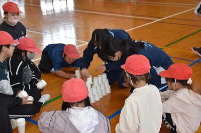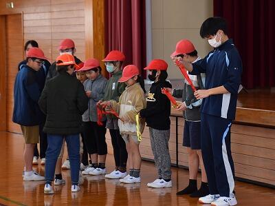 小学6年生と中学3年生が、もうすぐ卒業するため、合同でのレクリエーションを行い、思い出作りをしました。小学生、中学生がそれぞれに考えたゲームを行いました。小中合同のチームを編成し、競い合いました。年齢層に幅があるため、ゲームを考えるが難しかったと思いますが、小学1年生から中学3年生までが楽しめる内容で、とても盛り上がった時間となりました。卒業しても有水地区の仲間として、仲良く過ごしていってほしいと思います。