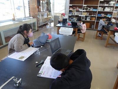 5年生が理科の授業で「流れる水のはたらき」の実験を行いました。花壇に山を作り、水を流しながら、まっすぐなところ、曲がっているところ、ゆるやかなところ等を調べ、はたらきについて考えました。観察の際に、タブレットを使って動画や写真を撮り、記録の時に役立てました。
