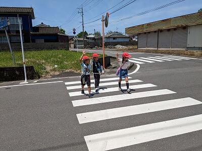 1・2年生が、生活科「がっこうだいすき」の学習で、学校周辺の探検に出かけました。探検では、先日の「交通教室」で学んだことを活かしながら活動することができました。