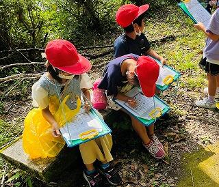 どんぐりも、「まんまるどんぐり」や「あなのあいているどんぐり」「木についたままのどんぐり」、「どんうりのぼうし」など、いろいろ見つけて、フィールドビンゴを楽しみました。