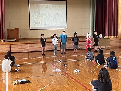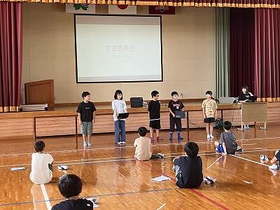 7月3日は、体育館で委員会の紹介(発表)がありました。