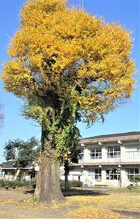 有水小も紅葉が進み、イチョウの葉っぱが黄色に色づいています。