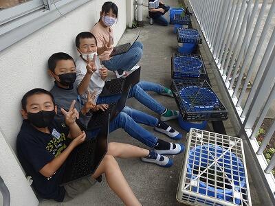 お米の大切さを学ぶために、5・6年生が、総合的学習の時間を使って「バケツ稲づくり」に取り組んでいます。JAグループからいただいた種もみをもとに、個人個人で育てています。水の調整をしたり、成長の様子をタブレットに記録したり、大切に育てています。