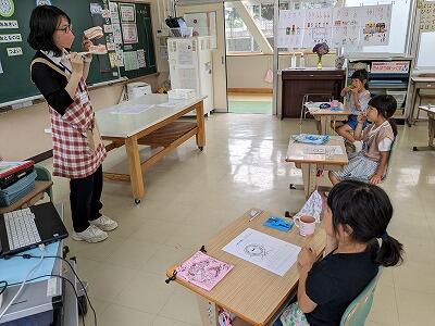 1、2年生が、学級活動の時間を利用して、養護教諭に「むしばよぼう」をテーマに授業をしてもらいました。授業では、むし歯になりやすい歯について学習したり、模型を使って歯みがきの仕方を学習したりしました。