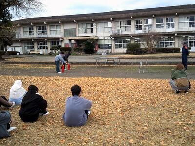 みんな大慌てです!消火器、非常ベル、119番に電話、子どもたちに放送、連携してみんなで頑張ります。
