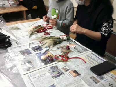 12月12日、PTA主催のクリスマスリースとしめ縄づくりがありました。