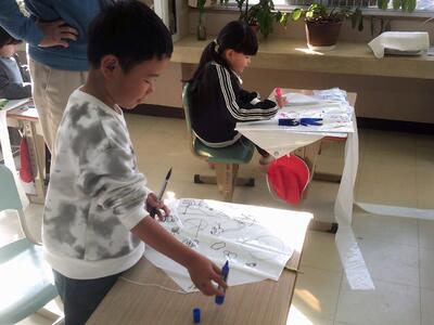 みんな上手に出来上がりました。空にあげるのが楽しみです!