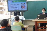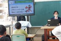 宮崎県警察本部生活安全少年課の方に来ていただき、1・2年生を対象に非行防止教室を行いました。「プライベイトゾーンについて考えよう」という内容で、「①一人一人の大切な心と身体を守るためにはどうしたらよいのか考える。 ②犯罪に巻き込まれないために気を付けることを考える。」という学習でした。プレゼンテーションやペープサートを使った分かりやすい説明をしていただきました。この学習を通して、1・2年生は自分や友達を大切にすることを学びました。