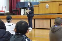 宮崎県警察本部生活安全少年課の方に来ていただき、1・2年生を対象に非行防止教室を行いました。「プライベイトゾーンについて考えよう」という内容で、「①一人一人の大切な心と身体を守るためにはどうしたらよいのか考える。 ②犯罪に巻き込まれないために気を付けることを考える。」という学習でした。プレゼンテーションやペープサートを使った分かりやすい説明をしていただきました。この学習を通して、1・2年生は自分や友達を大切にすることを学びました。