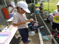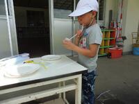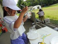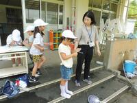 1年生の生活科で、水を使った遊びをしました。「水と仲良くなろう!」という学習で、子供たちが楽しく、そして学びにつながるような水の遊び「シャボン玉遊び」などを行いました。一人一人、目を輝かせながら取り組んでいました。友達と協力して取り組む様子も見られました。暑い日の水遊びは、子供たちにとってわくわくする活動のようです。