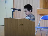 全校朝会がありました。担当の先生から、「自分の考えを最後まではっきり言おう」と「あいさつたしざん」についての話がありました。自分の考えをはっきり言える児童になってほしいですね。その後、4年生による発表がありました。国語で学習した「①ためになることわざ ②数字の入っている四字熟語」についての発表でした。クイズもあり楽しい発表でした。最後に、5年生の宿泊学習での学校紹介の発表映像を見ました。全校のみんなは、堂々としたユニークな発表に見入っていました。発表の機会を設けることで、表現力が育ってきています。