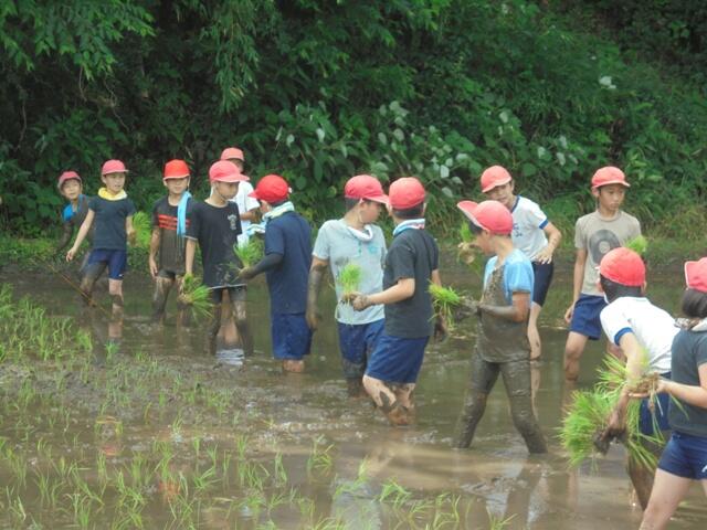 田植えができるように、代かきや水入れ等をしてくださった、大古殿さん。畦の草刈り、苗取り、当日のお世話などしてくださった、保護者の皆様ありがとうございました。