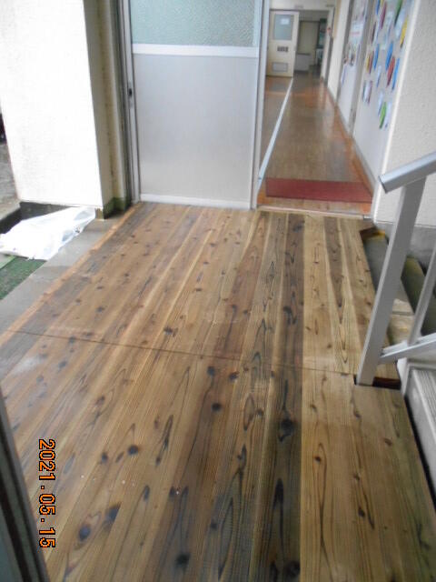 放水の圧が高い方と、効率よく作業できるとの幼稚園の