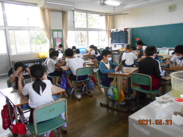 タブレットで検索して調べたり、おうちの方に聞いたりして、