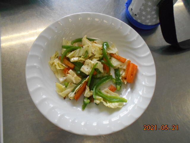 できあがった野菜炒めは、お弁当と一緒に美味しくいただきました。