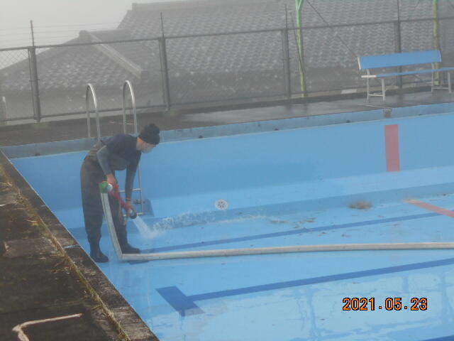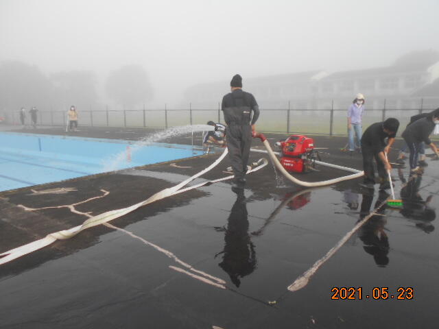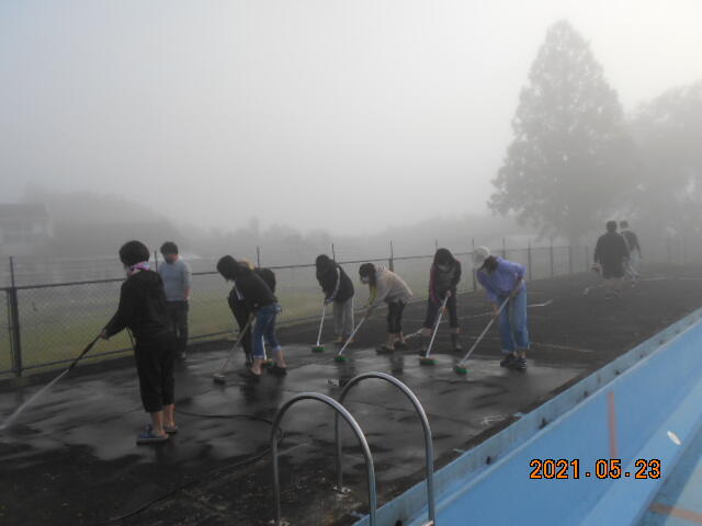 翌日の24日(月)に児童と教職員によるプール掃除を