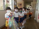 石山幼稚園のみんなで「巨大てるてる坊主」を作りました。