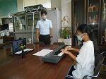 「校歌斉唱」 伴奏に合わせて、教室で歌う