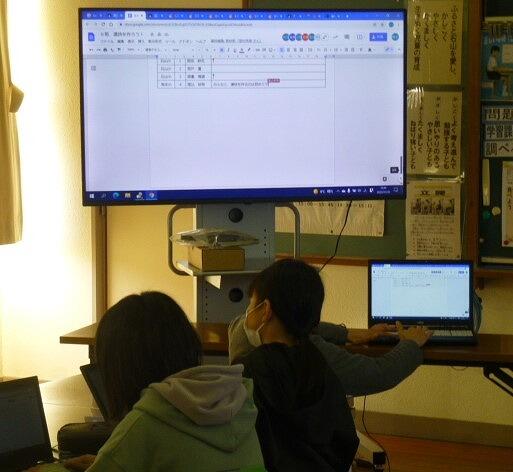 国語では、他校の児童と協力して、共同作業で詩を作り上げていまし