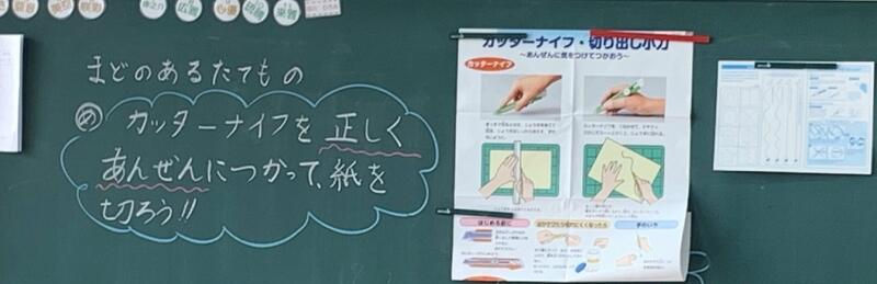 めあて「カッターナイフを正しく安全に使って、紙を切ろう。」