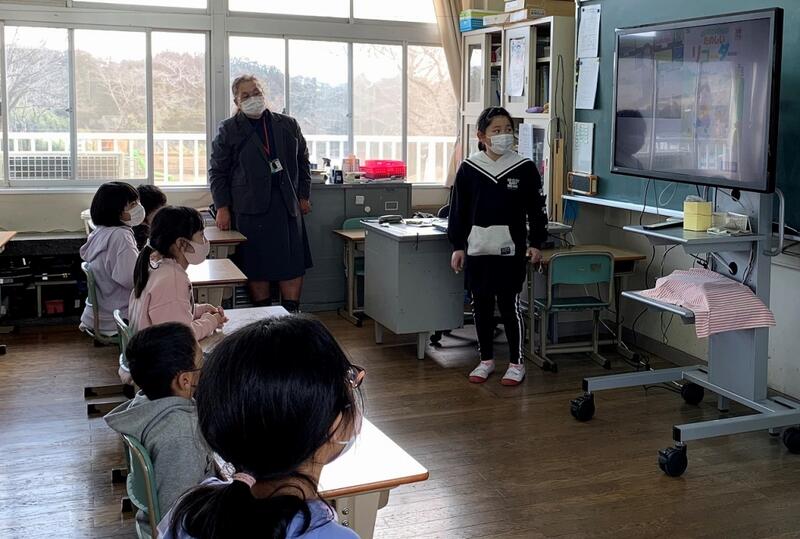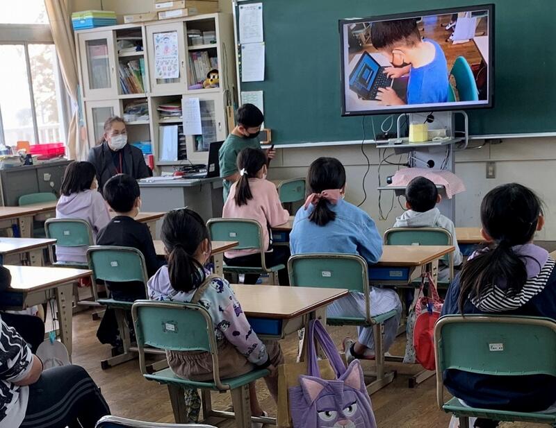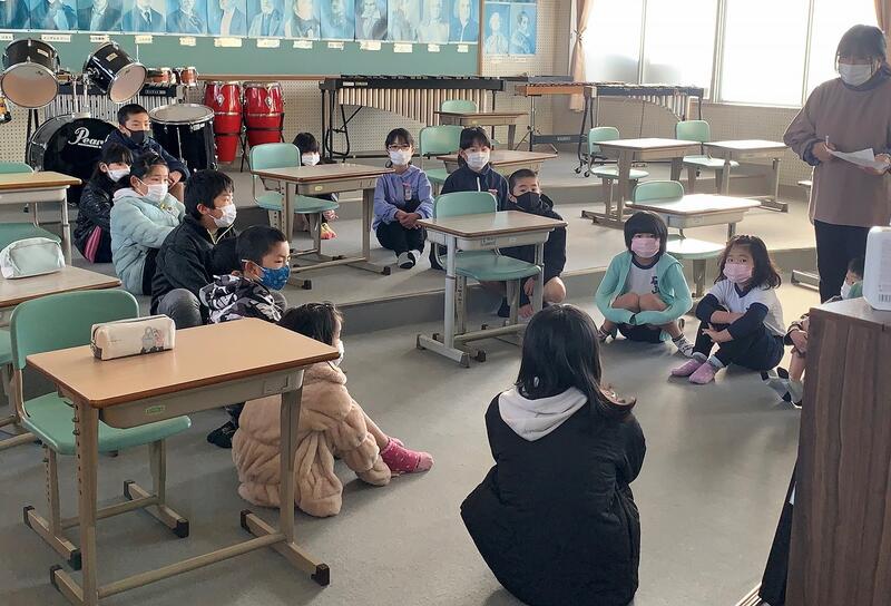子ども達は給食を食べながら、静かに聞き入っていました。