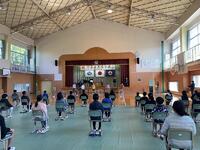コロナ禍なので、分散型で実施しました。(体育館・家庭科室・音楽室・多目的室・理科室に分かれて)