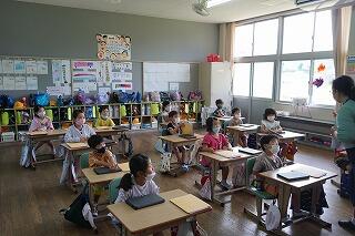 今日は、持ち帰りのルール等について、各学級で指導を行ったり、学習課題の説明をしたりしました。子どもたちは担任の先生の説明を真剣に聞いていました。