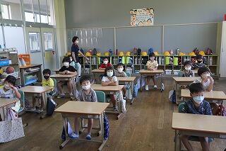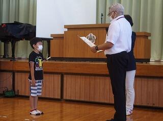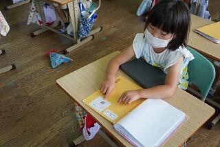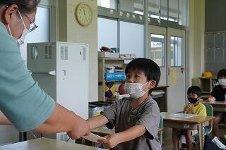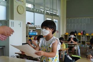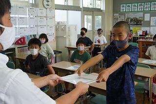 子どもたちは、各学級で担任の先生から通知表「あゆみ」を笑顔で受け取りました。「夏休みに家族でどこかに出かけたいです。」、「プールに行きます。」「バーベキューをします。」と、とても楽しみにしている様子でした。