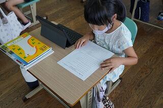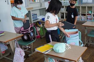 今回はその前段階として、全ての児童を対象に、学習用パソコン(Chromebook)の家庭への持ち帰りを行いました。