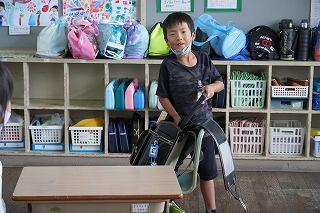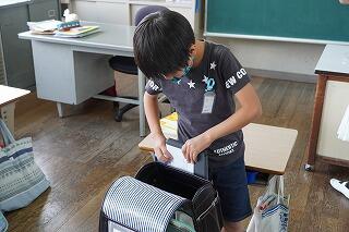 (ランドセルに入れて、いよいよ持ち帰りです。)