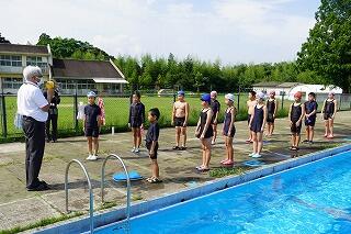 本年度もけがや事故もなく無事に水泳指導を終えることができました。最後にお世話になったプールにみんなでお礼の挨拶をしました。