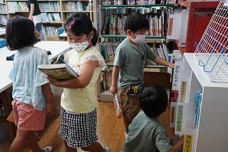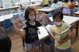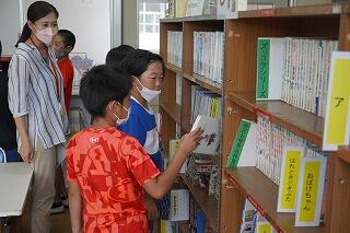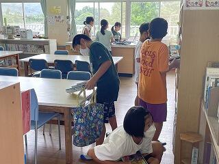 夏休みの図書貸出が、19日(火)上学年と20日(水)下学年にありました。今回は、一人5冊まで借りることができます。