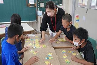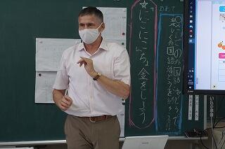 ALTのスペンサー先生の授業を子どもたちは毎回楽しみにしています。授業の内容や教材・教具がいつも工夫されていて、子どもたちも笑顔いっぱいです。