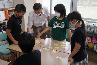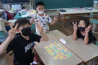 5年生の外国語科の授業はアルファベットの大文字と小文字の復習でした。スペンサー先生自作のゲームに夢中になって取り組み、エキサイトしていました。