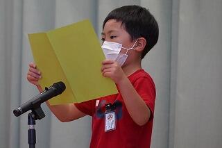 1年生と6年生の児童2名が「1学期にがんばったこと」を作文発表しました。すばらしい発表でした。
