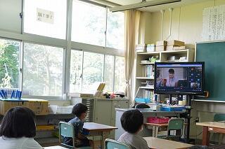 オンラインで学習部長の先生、生徒指導主事の先生、保健室の先生から夏休み中に気を付けてほしいことについてお話がありました。子どもたちはしっかり聞いていました。