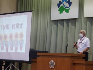 学習や生活、健康安全面について振り返りのお話や楽しい夏休みにするためのお話がありました。