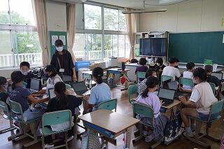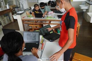 これまでの学習で予想を立てて、天気が変わるときの雲の様子を観察してきました。記録には学習用PC(1人1台端末)を活用して、天気が変化しそうな日に、時間の経過に合わせて、連続で写真を撮影しました。
