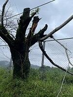 学校の運動場や中庭、前庭、坂道にはたくさんの枝葉が落ちていて、とりあえず大枝だけを片付けました。イチョウやサクラなど3本ほどが幹の途中から折れていて、教育委員会に依頼しました。